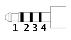 Har 4-polig 2.5mm-plugg, där jag kallar kontakten närmast spetsen (1), och kontakten närmast kabeln (4). Kontakterna däremellan benämns (2) samt (3).