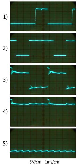 Hela Mönstret ovan repetereades c:a 177 gånger per sekund, vilket betyder att man behöver ändra utdatat c:a 1062 ggr per sekund. Det är trivialt att göra med en microkontroller. För övrigt kändes 18 distinkta lägen när man roterade axeln på motorn ett varv, vilket troligen innebär att den roterar 6 gånger långsammare än man upprepar hela mönstret, dvs kanske 1800 varv per minut.