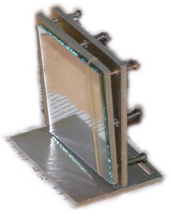 Detta projekt är en stabil spegelhållare som kan vinklas väldigt exakt. Det behövs ofta om man leker med en laser. Jag sågade ut alla bitar med ur en 4 mm tjock aluminiumskiva, borrade, gängade, och limmade ihop den med kemisk metall. Det räcker med några foton för att visa hur den är gjord.