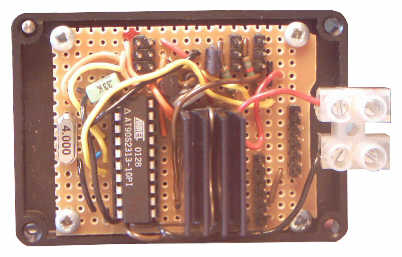 Bygeln dras ut för att styra stegmotorerna var och en för sig, så att vardera kanalen styr enbart en stegmotors hastighet. - AT90S2313 är en mikrokontroller, som måste programmeras innan projektet fungerar. Hexfilen kan laddas ned här.