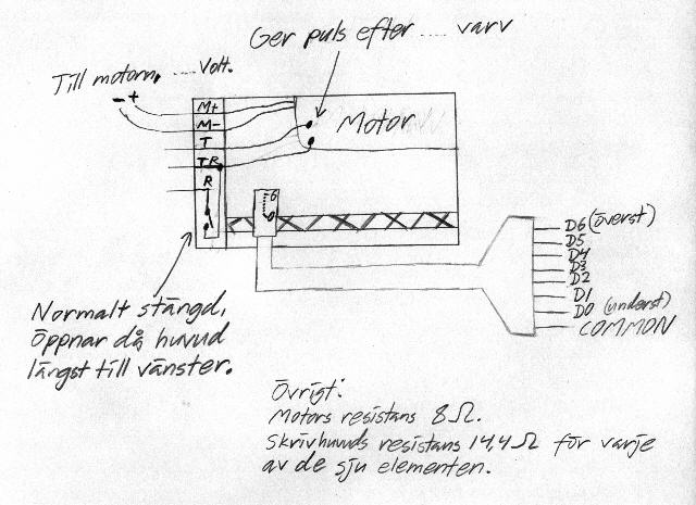med 5 volt och skrivarhuvudet med 3 volt. Jag har